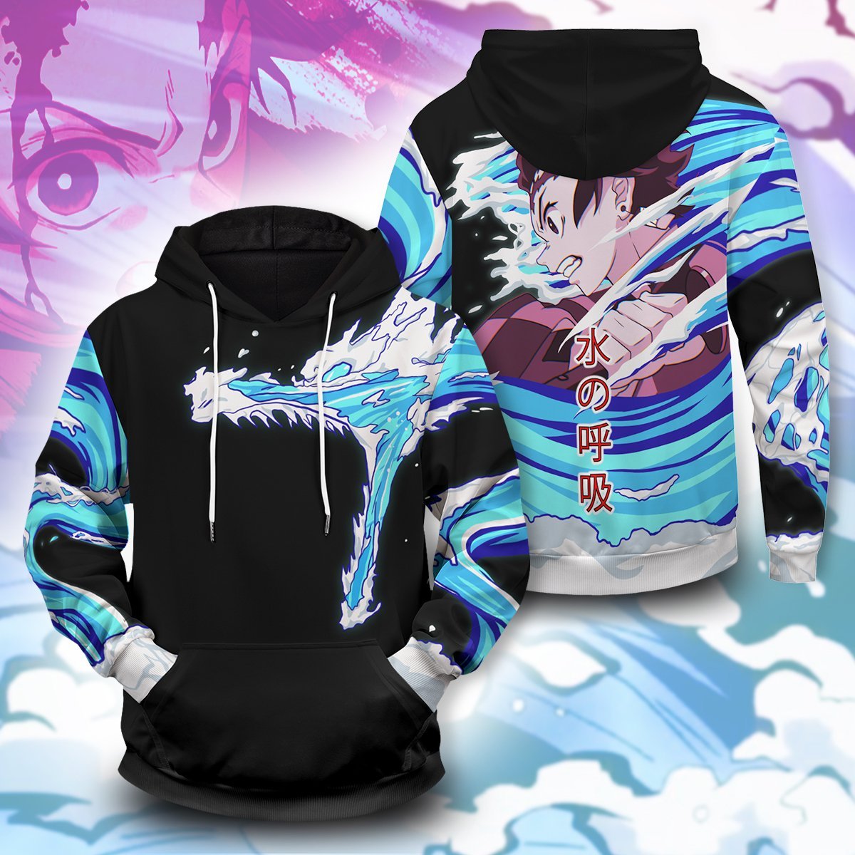 Demon Slayer Hoodies – Tanjiro Water Style Unisex Pullover Hoodie FH0709